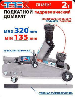 Домкрат ТРЕК №-J-2501-подкатной в чемодане-2 тонны(135-320 мм)