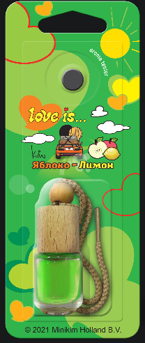 Освежитель LOVE IS-ФЛАКОН с деревянной крышкой-ЯБЛОКО+ЛИМОН