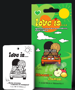 Освежитель LOVE IS-Подвесной картон-ЯБЛОКО+ЛИМОН