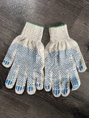 __ПЕРЧАТКИ Х/Б-10 класс-6 нитей ПФХ-24 см Бело/серые,зеленый манжет(10 пар в упаковке)